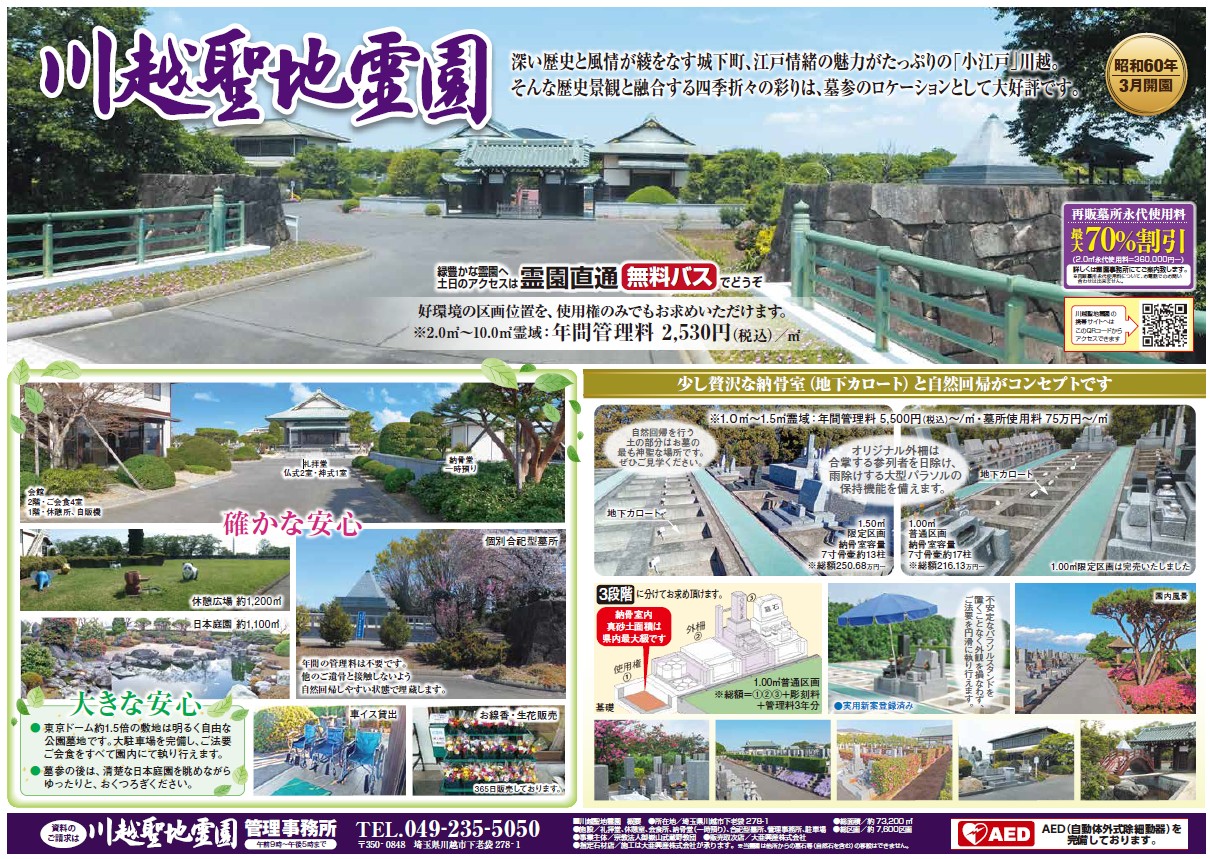 川越聖地霊園管理事務所 TEL 049-235-5050 年中無休 9時00分~17時00分 |